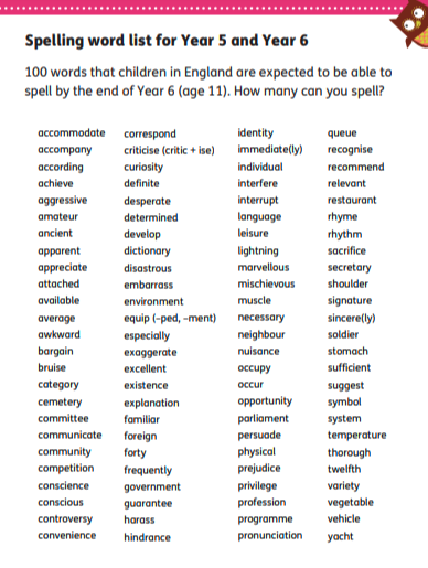 Your child will be tested on 15 spellings weekly. The first 10 are arranged by sound. There will be five that do not follow the pattern that are from the expected year group word lists (available to view on the school class webpage), or words that the class are finding tricky. The 10 words will be sent home and uploaded to the class webpage weekly.